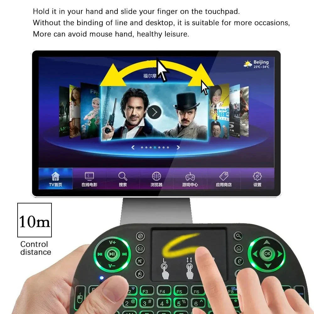 Забудьте о громоздких пультах и неудобных классических клавиатурах. Эта беспроводная клавиатура с подсветкой объединяет комфорт, полный контроль и стильный дизайн в компактном формате — идеальное решение для управления Android TV-приставкой, ПК или проектором. Благодаря сверхстабильному беспроводному соединению 2.4G вы получаете плавную навигацию без обрывов и задержек, где бы вы ни находились в комнате.