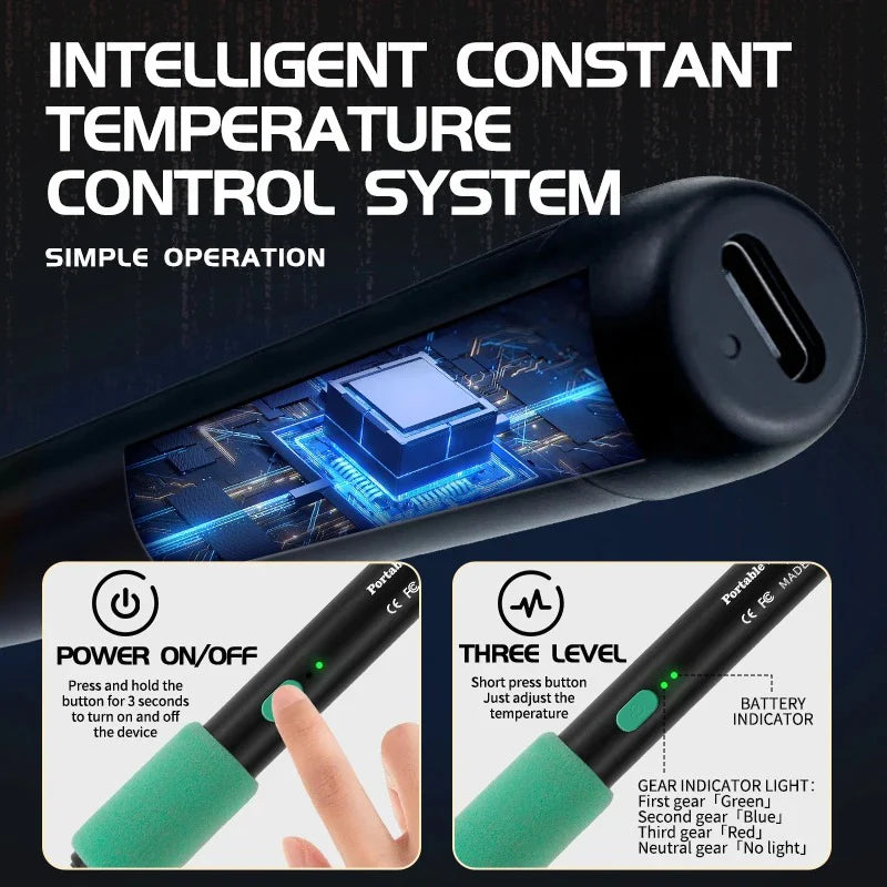 Оснащённый аккумулятором большой ёмкости и портом USB Type-C, паяльник быстро заряжается и может использоваться даже во время зарядки. Никаких перерывов! Работайте непрерывно над электронными проектами или творческими изделиями, не беспокоясь о разрядке батареи. Встроенная система поддерживает стабильную температуру, предотвращая перегрев и защищая чувствительные компоненты.
