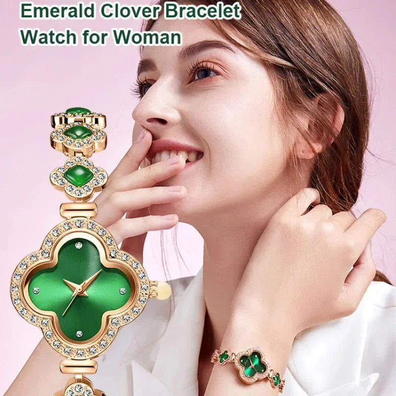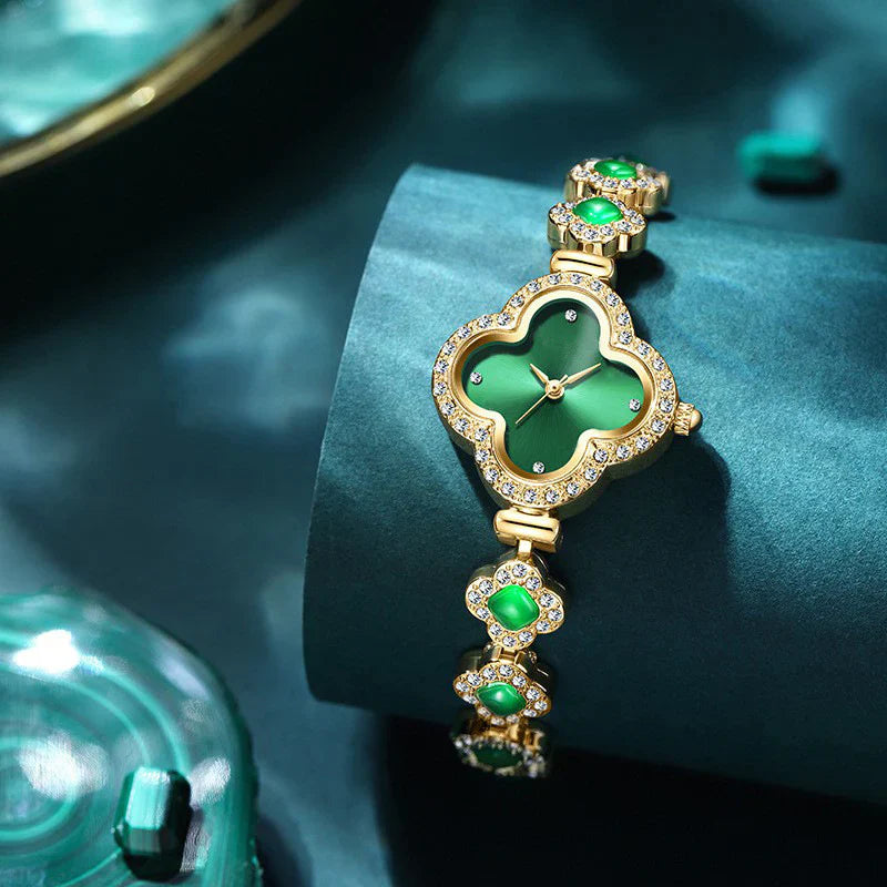 Откройте для себя часы «Счастливый Клевер», произведение часового искусства, в котором идеально сочетаются элегантность и глубокий символизм. Нежные лепестки четырёхлистного клевера, украшенные ослепительными зелёными камнями, превращают этот аксессуар в по-настоящему исключительное изделие, наполненное удачей и процветанием. Это не просто часы — это настоящий талисман, который придаёт вашему запястью утончённость и сопровождает вас с безупречным стилем каждый день.