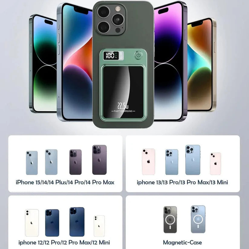 Представьте мир, в котором ваш смартфон, планшет или любое другое устройство всегда остаётся заряженным, где бы вы ни находились. С этим беспроводным магнитным пауэрбанком вы забудете о стрессе из-за разряженной батареи! Благодаря внушительной ёмкости 50 000 мА·ч или 100 000 мА·ч он станет вашим надёжным спутником во всех ситуациях — от повседневного использования до самых требовательных путешествий. Больше не нужно отчаянно искать розетку: энергия всегда под рукой.