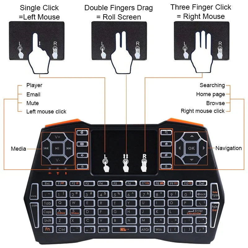 Откройте для себя карманную мини-клавиатуру I8 Plus — концентрат современных технологий в компактном формате. Это не просто клавиатура: она объединяет в себе беспроводную клавиатуру, мультисенсорную тач-панель и встроенную мышь. Благодаря стабильному и быстрому соединению 2.4 ГГц вы получаете плавное и точное управление всеми вашими устройствами: ПК, Smart TV, Android TV Box, игровыми консолями и мультимедийным центром KODI.