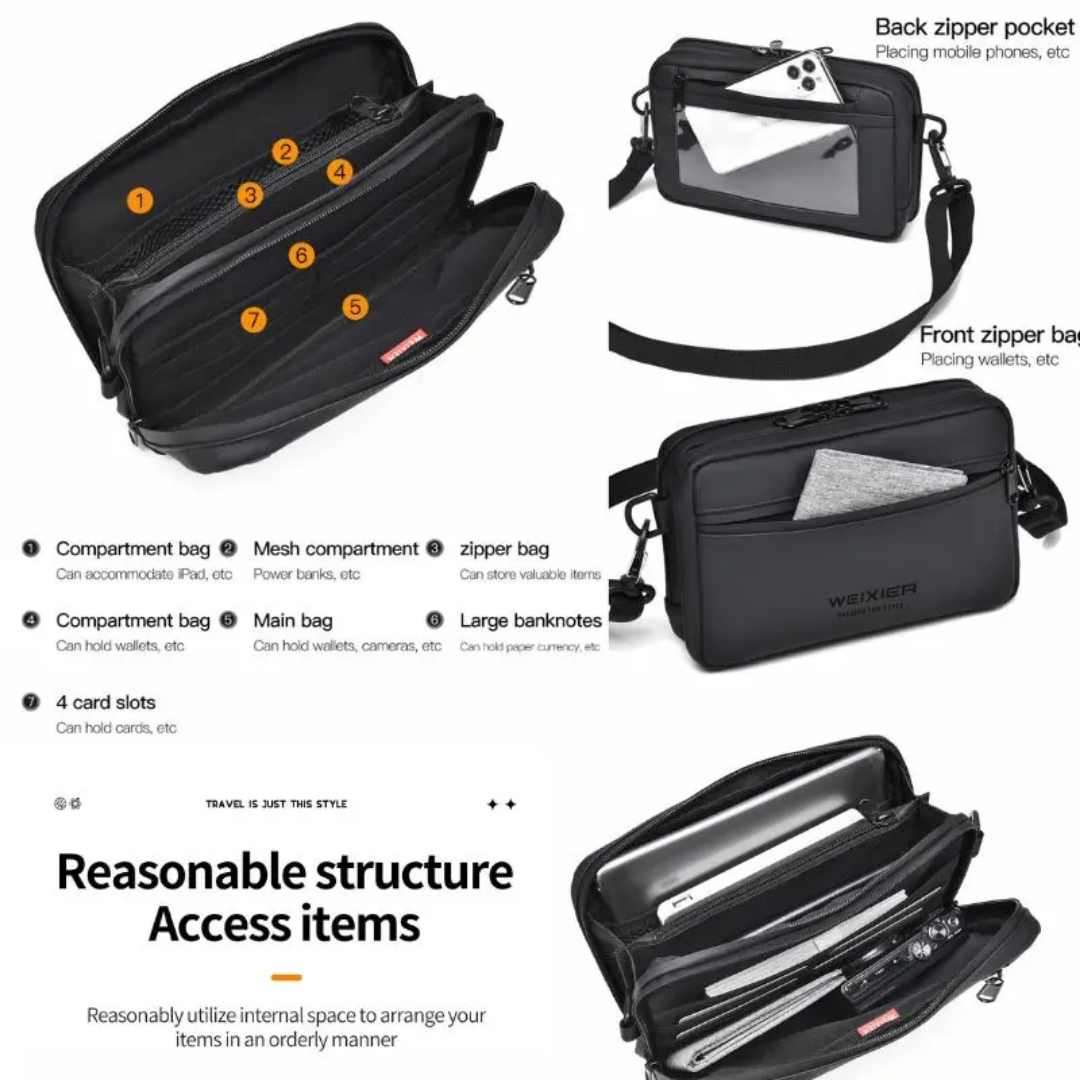 Вы ищете сумку, которая будет одновременно практичной и стильной для ваших повседневных приключений? Мужская сумка-мессенджер Weixier — идеальное решение. Созданная для активного образа жизни, она сочетает в себе лёгкость, прочность и современный дизайн. Будь то деловая поездка, путешествие или повседневные перемещения, эта сумка обеспечивает идеальную организацию всех необходимых вещей, сохраняя элегантный стиль. Больше не тратьте время на поиски — у каждой вещи есть своё место!