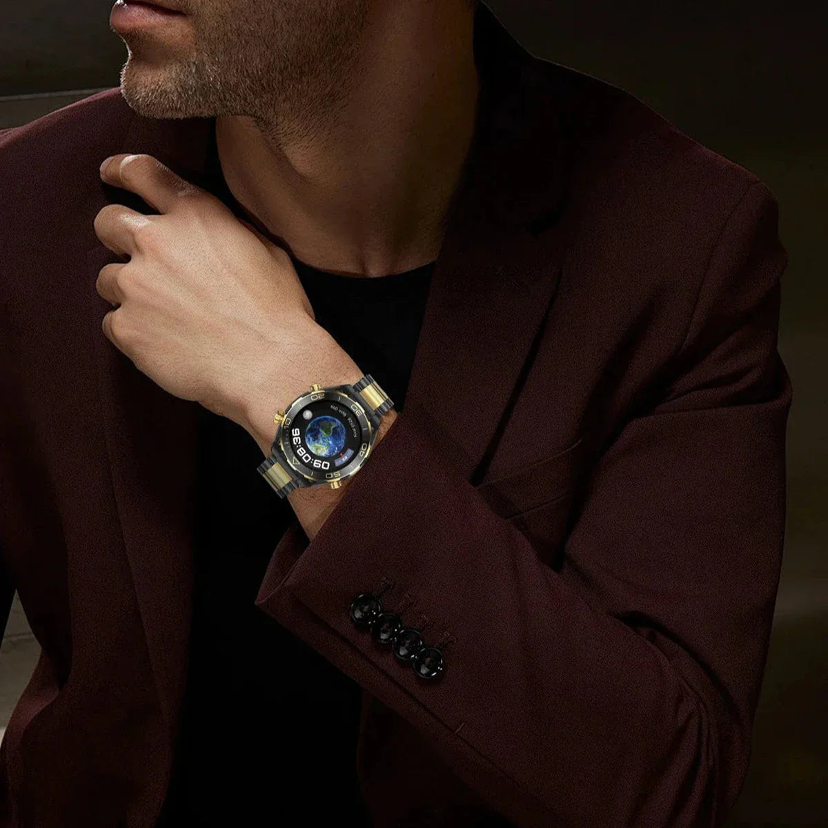 Откройте для себя идеальные умные часы, в которых стиль и технологии объединяются, чтобы подарить вам исключительный опыт. Созданные для современных и требовательных мужчин, они выделяются элегантным круглым дизайном и сенсорным экраном с высоким разрешением 360×360 пикселей, обеспечивающим идеальную видимость в любых условиях.