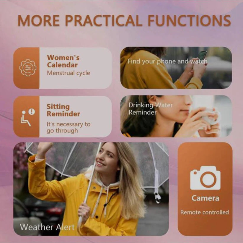 Но и это ещё не всё! Этот технологический аксессуар заботится о вашем здоровье. Отслеживайте частоту сердечных сокращений в реальном времени, контролируйте менструальный цикл, уровень SpO2 и качество сна. С 110 спортивными режимами часы сопровождают вас во всех активностях — прогулки, йога или энергичные танцы!
