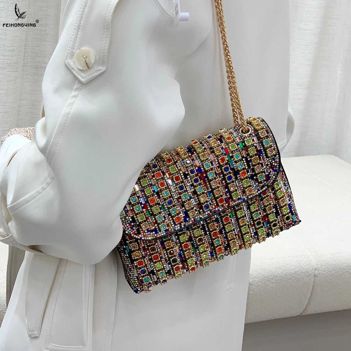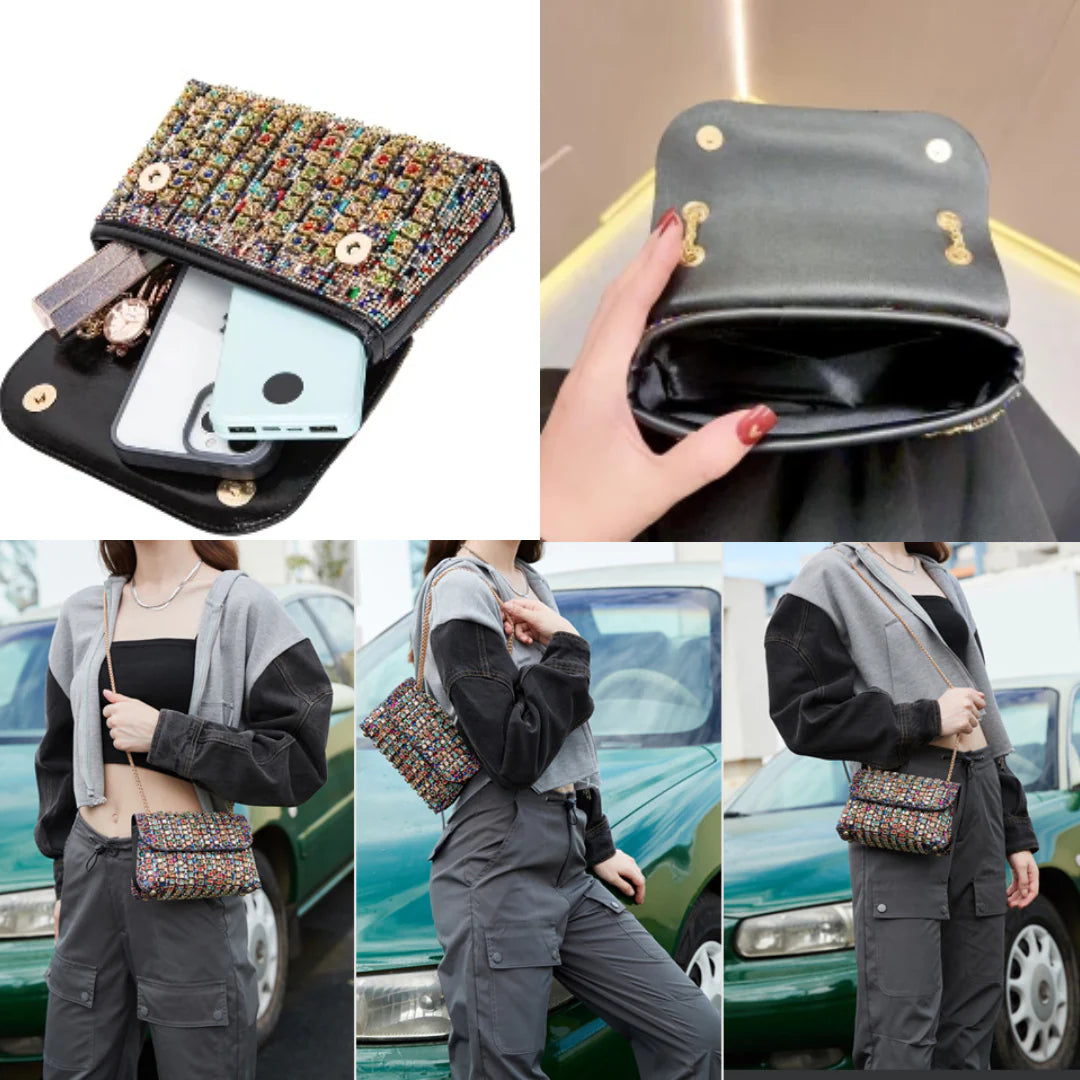 Будь то элегантный вечер или особое мероприятие, эта цветная сумка со стразами — идеальный выбор, чтобы сиять и привлекать внимание. Не упустите шанс приобрести этот изысканный и универсальный аксессуар, который добавит вашей коллекции нотку утончённости. Выбирайте эту сумку через плечо со стразами и позвольте себе очароваться её ярким дизайном и исключительной функциональностью.