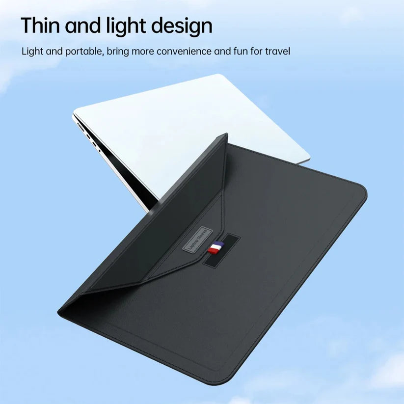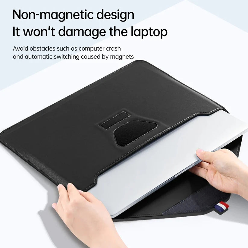 За тонким силуэтом скрывается продуманная практичность. Благодаря встроенной подставке ваш MacBook приподнимается на оптимальную высоту, обеспечивая комфорт при наборе текста. Передний клапан легко превращается в коврик для мыши, создавая мобильную мини-рабочую станцию — идеальное решение для работы и развлечений в любом месте. Незаметная застёжка на липучке гарантирует быстрое и надёжное использование.