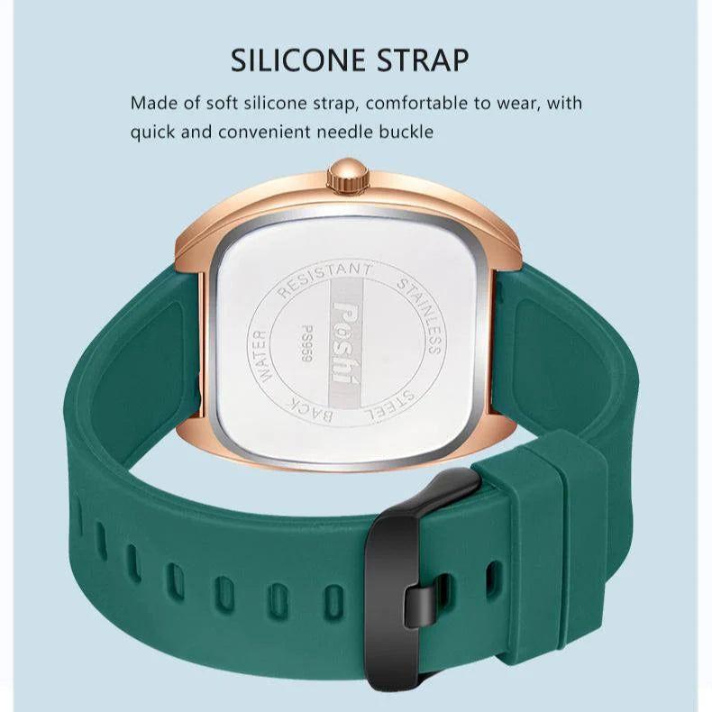 Непревзойдённый комфорт и безупречная долговечность. Благодаря высококачественному ремешку из силиконового геля они совмещают мягкость и прочность. Этот износостойкий материал обеспечивает исключительное ощущение комфорта на запястье, позволяя носить часы целый день без компромиссов в стиле. Цвет сохраняет свою яркость со временем, даже при частом использовании, гарантируя всегда безупречный внешний вид.