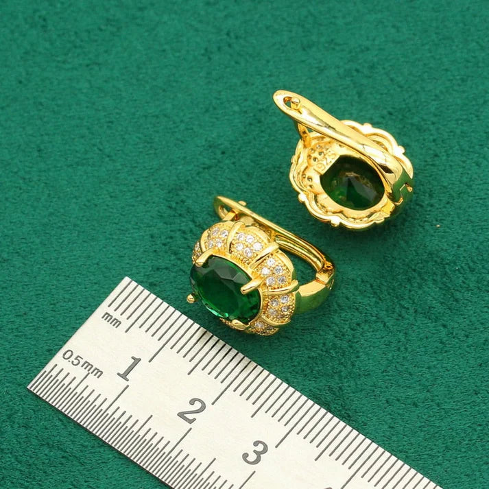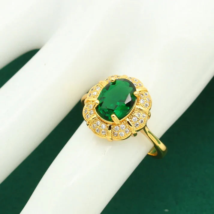 Сияйте во всем великолепии и привлекайте все взгляды с этим 5-частным набором украшений из позолоченного золота и зелёной циркониевой вставки, созданным для тех, кто ценит элегантность без компромиссов. Каждая деталь этого набора рассказывает историю роскоши и утончённости, превращая ваш образ в настоящее произведение искусства.