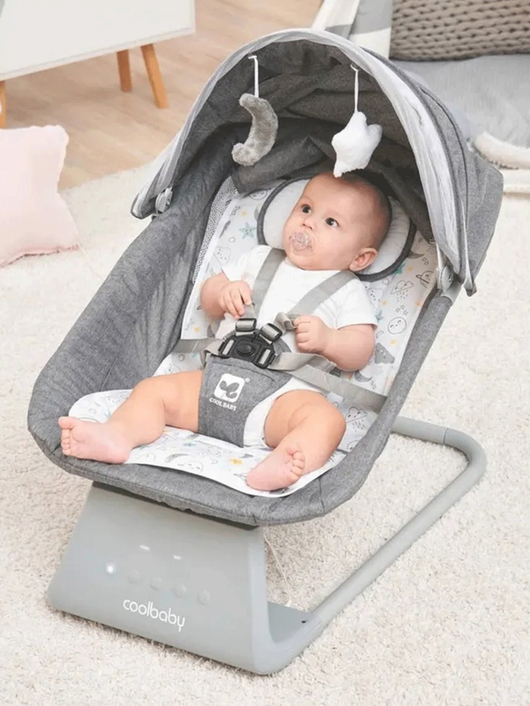 - Для дома и улицы портативный и удобный: Поддерживает работу от внешнего аккумулятора (Power Bank), идеально подходит для использования дома, на террасе или в путешествиях. Удобная портативность позволяет успокаивать малыша в любое время и в любом месте.