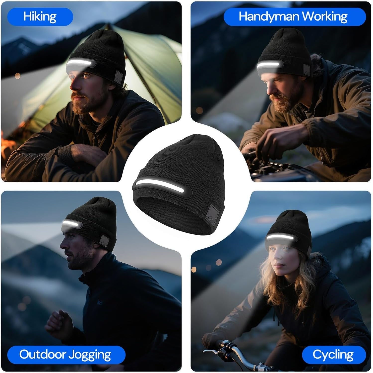 - Шапка оснащена тремя регулируемыми уровнями яркости, которые подходят для различных условий и задач. Она идеально подходит для охоты, кемпинга, бега или ремонта автомобиля, обеспечивая удобное освещение и оставляя руки свободными в холодные зимние вечера.
