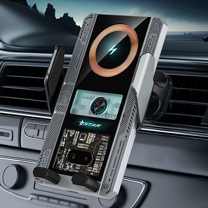 - Это автомобильное беспроводное зарядное устройство оснащено технологией автоматического датчика, которая позволяет фиксировать телефон без усилий. Когда вы подносите смартфон к держателю, зажимы автоматически закрываются и надежно удерживают устройство. Чтобы снять телефон, достаточно легко коснуться верхней части держателя — зажимы сразу разойдутся, обеспечивая удобное и безопасное использование во время вождения.