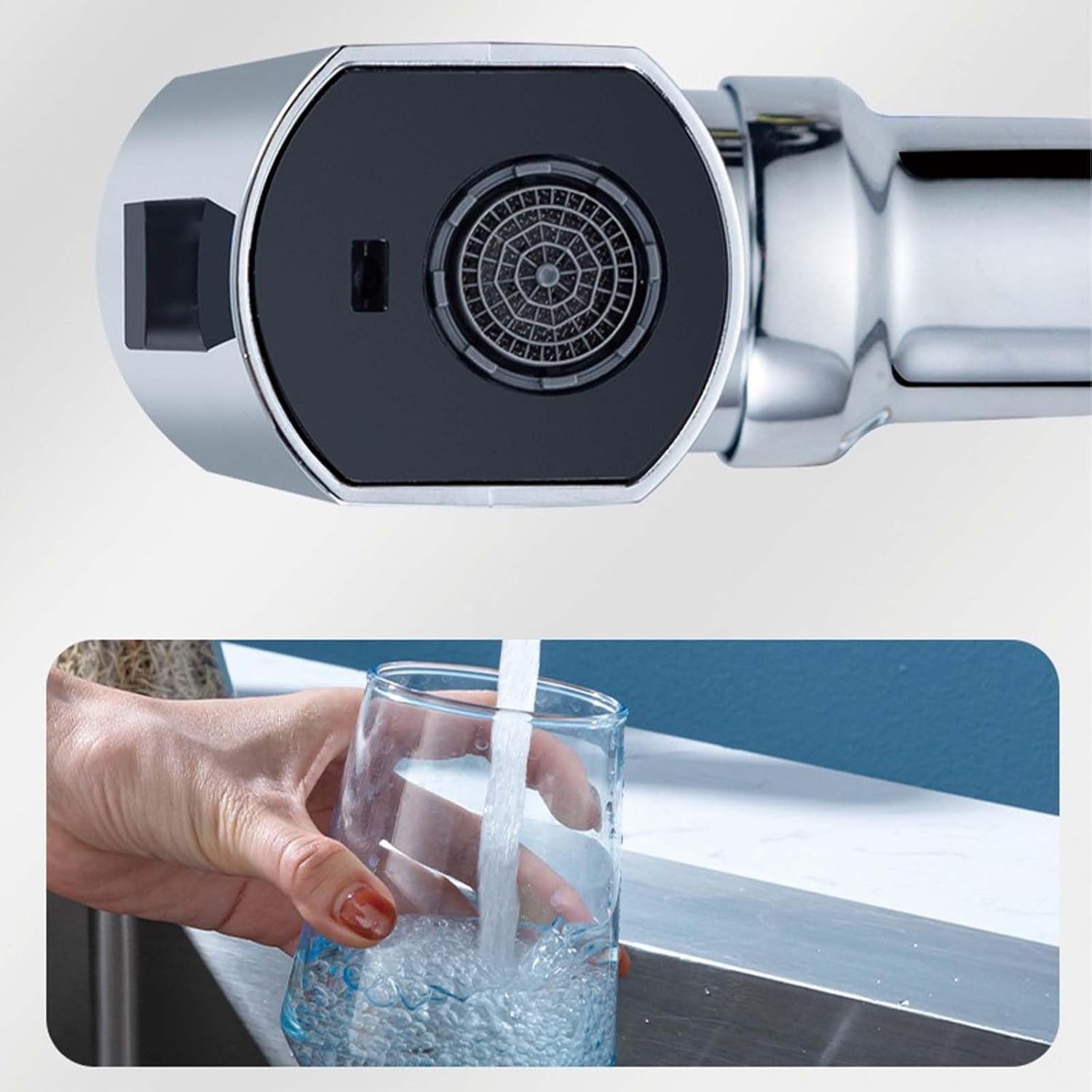 - Насадка для крана с современным дизайном из нержавеющей стали придаёт кухне элегантный вид и обеспечивает надёжную ежедневную эксплуатацию. Прочный материал устойчив к коррозии и рассчитан на долгий срок службы.