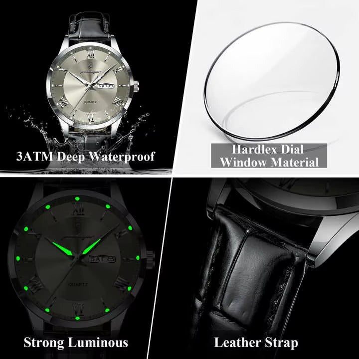 - Элегантный и классический дизайн: Часы отличаются стильным и утонченным дизайном с четким циферблатом и римскими цифрами, что делает их идеальным аксессуаром как для повседневного, так и для делового образа.