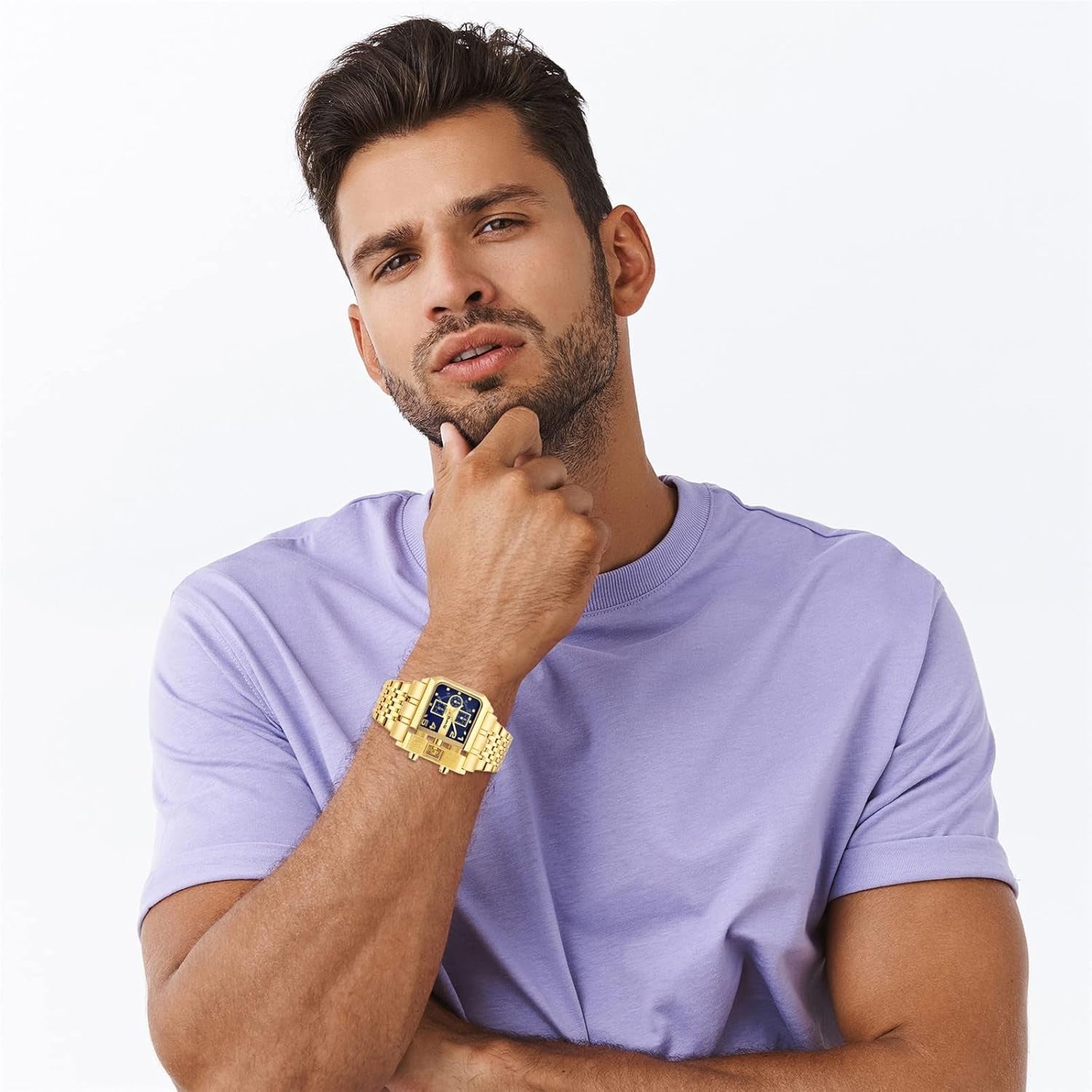 - Изготовленные из высококачественных материалов, часы оснащены ремешком из нержавеющей стали, который обеспечивает комфорт при ношении и высокую износостойкость. Глянцевый циферблат и полированный металлический корпус придают модели роскошный и современный вид, а задняя крышка из нержавеющей стали подходит для повседневного использования.