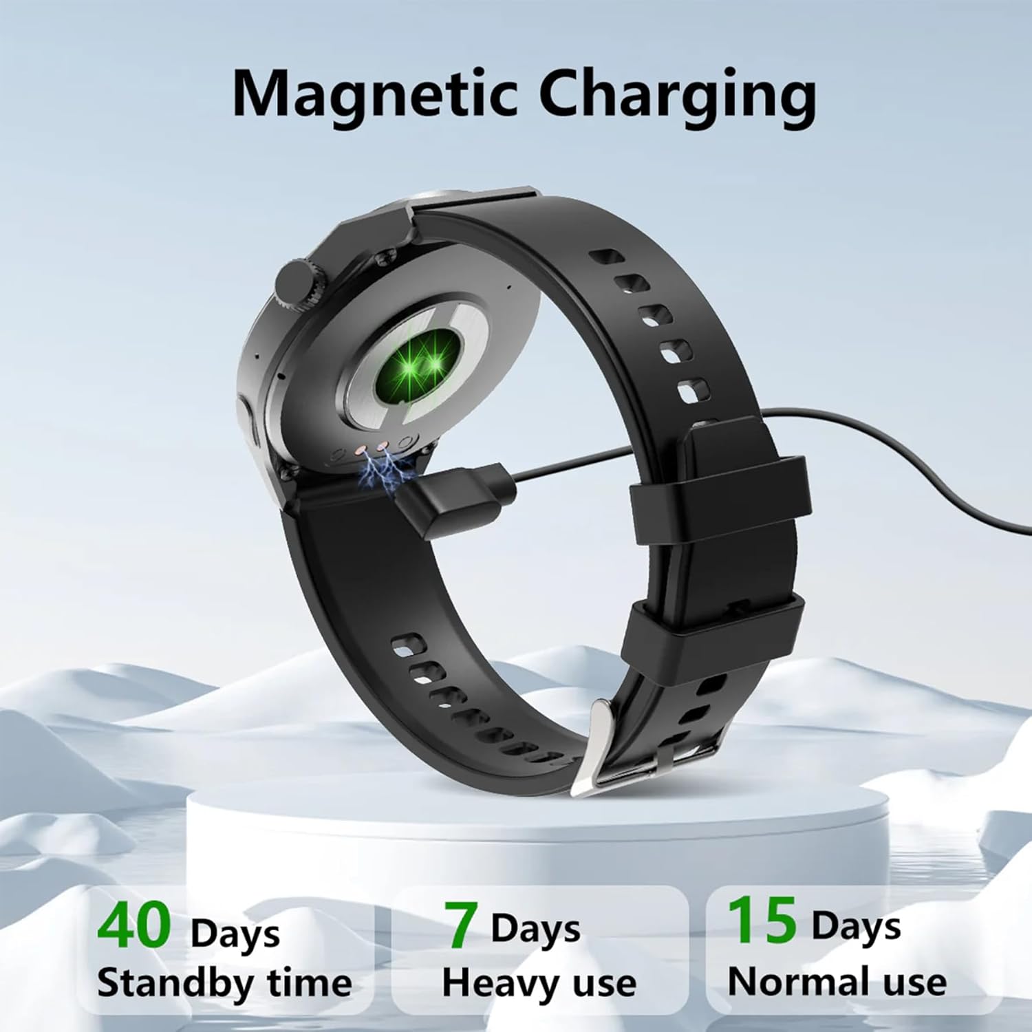 - Водонепроницаемость IP68 и ёмкий аккумулятор: Благодаря защите IP68 часы подходят для повседневного использования и неглубоких водных активностей. Аккумулятор 650 мА·ч с магнитной быстрой зарядкой полностью заряжается за 1,5–2 часа, обеспечивая до 7 дней работы и более 40 дней в режиме ожидания.