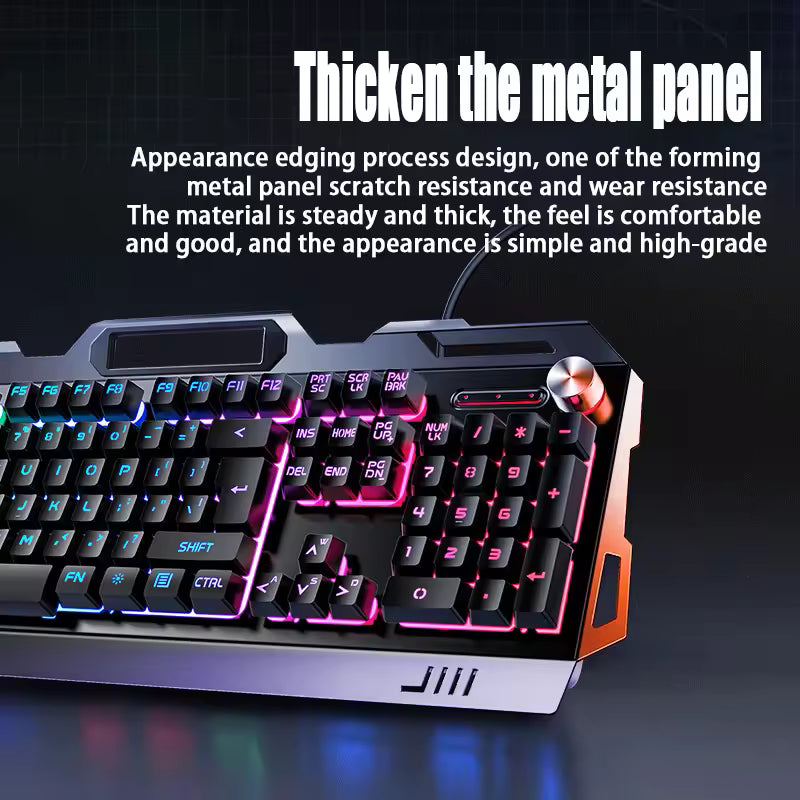 - Клавиатура с подсветкой отличается механическим ощущением нажатия, обеспечивая точность и быстрый отклик. Металлическая панель делает её прочной и устойчивой даже при длительных игровых сессиях. Яркая подсветка помогает комфортно играть в темноте и придаёт клавиатуре эффектный внешний вид.