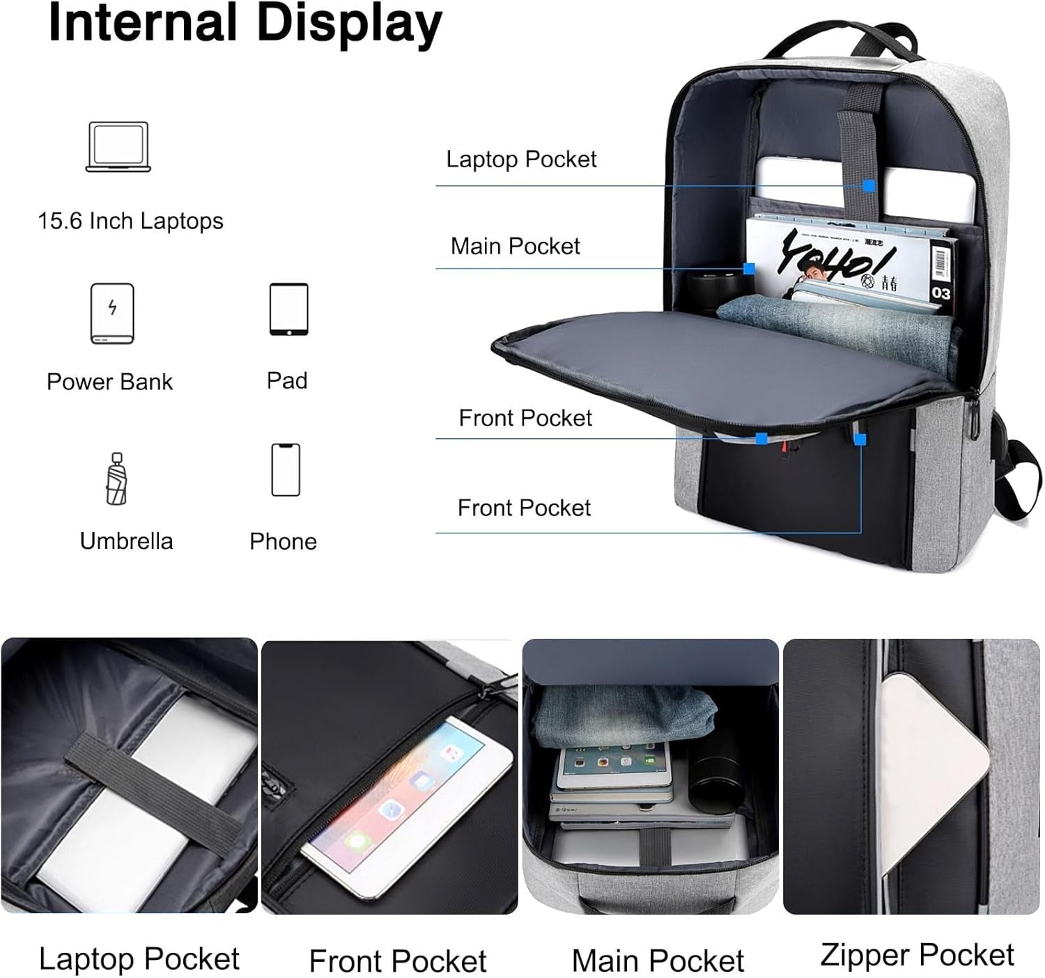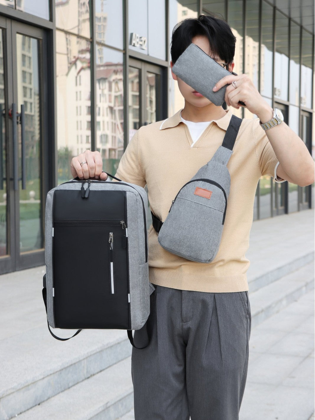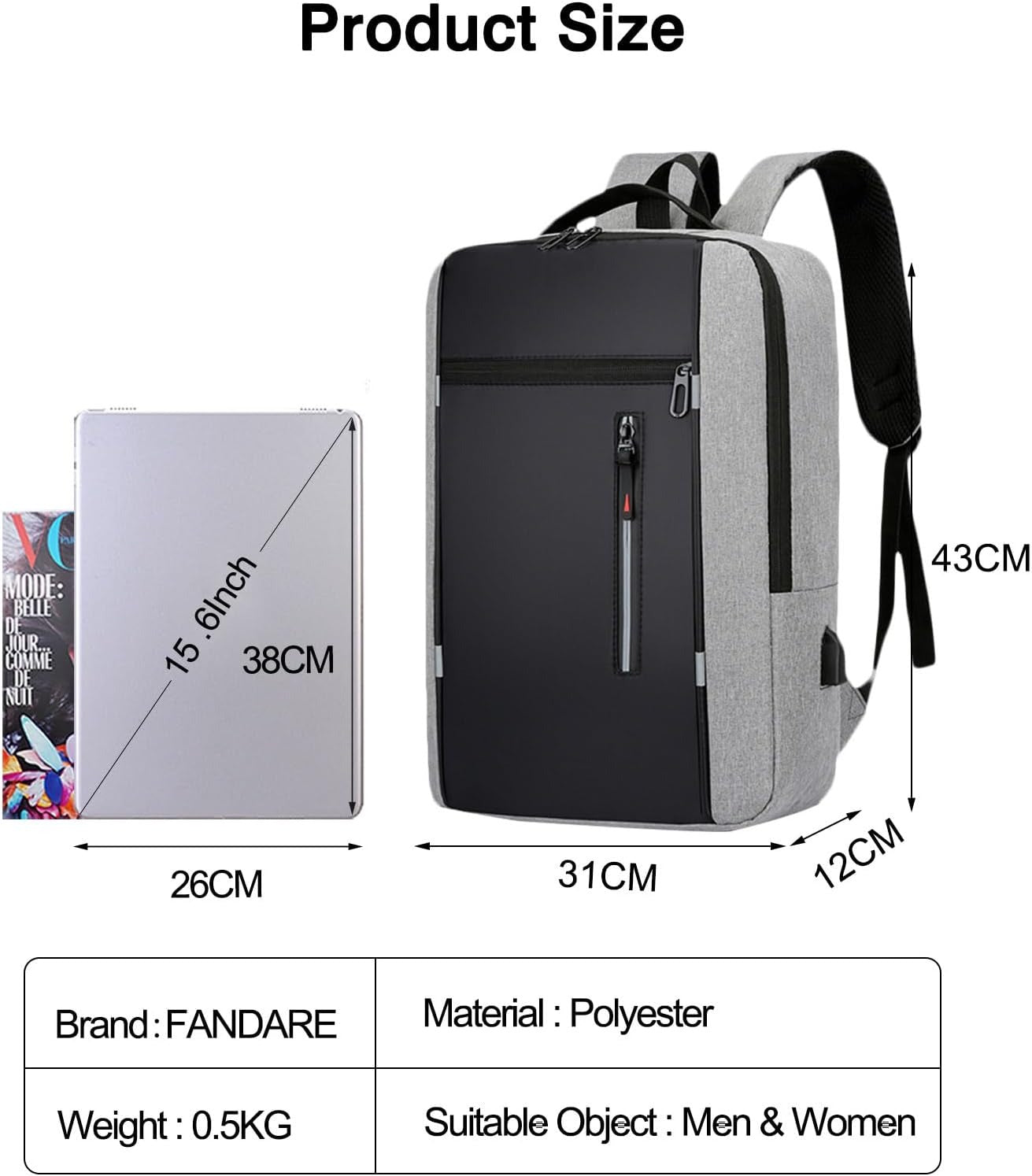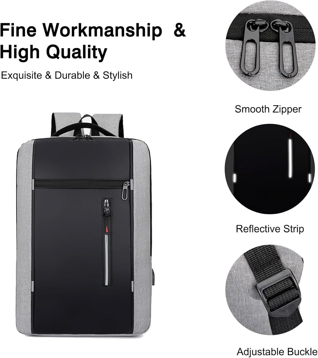 - Современный и стильный дизайн: Рюкзак с современным дизайном в элегантном сером цвете и чёрной фронтальной панелью. Подходит для мужчин и женщин, идеально для работы, учёбы и повседневных поездок.