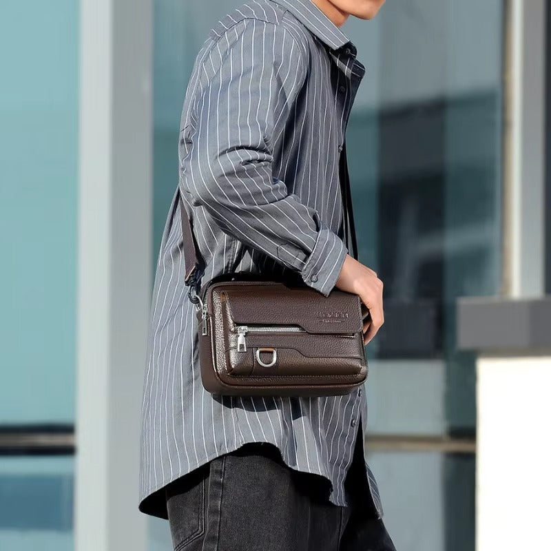 - Стильный дизайн и высокое качество: Мужская сумка через плечо выполнена из прочной искусственной кожи PU и оснащена качественной гладкой молнией. Стильный и аккуратный внешний вид подчёркивает ваш утончённый вкус, а мягкая кожа делает сумку приятной и удобной в использовании.