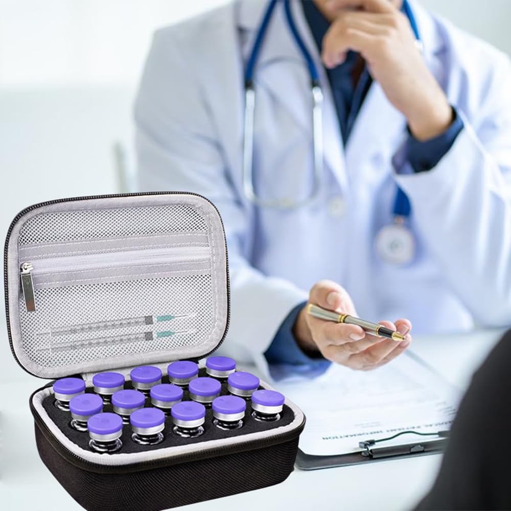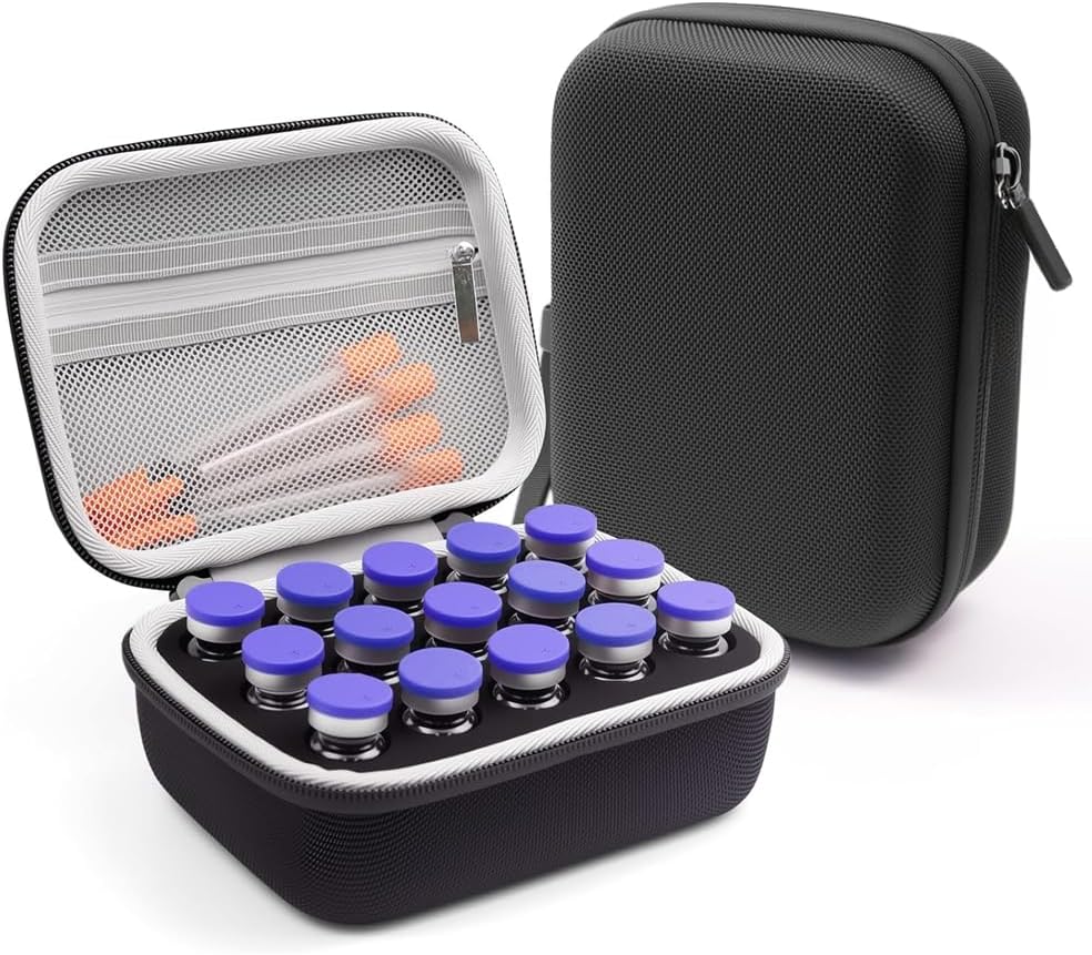 - Большая вместимость: Наша сумка для пептидов небольшого размера (6,7 × 5 × 3 дюйма), но обеспечивает просторное хранение в ней помещается до 15 стандартных флаконов по 5–10 мл или эфирные масла. Прилагаемый сетчатый карман помогает организовать и упорядочить принадлежности для диабетиков. Идеальна для ежедневного использования или путешествий. (Сумка предназначена только для пептидов)