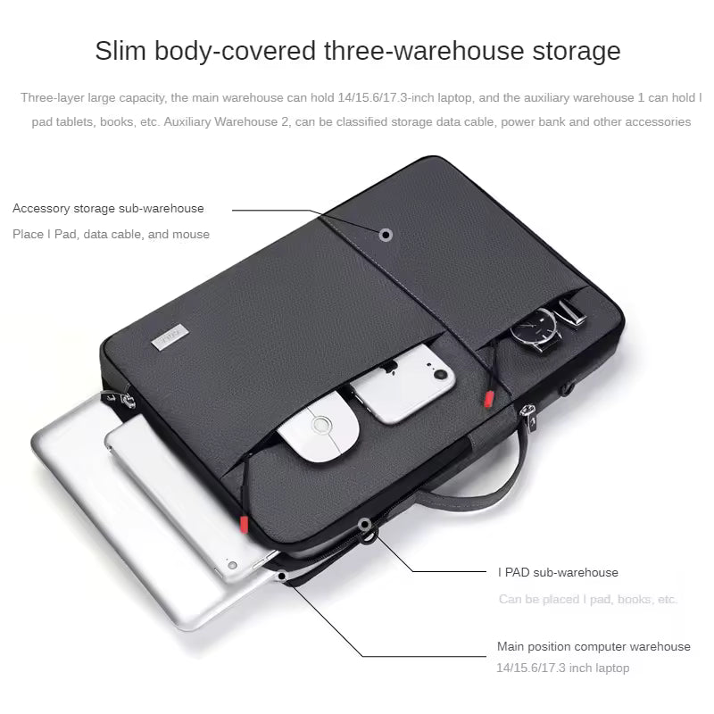 - Защита от ударов для вашего оборудования: Благодаря противоударной конструкции сумка защищает вещи от повседневных повреждений. Ноутбук, планшет и важные документы остаются в безопасности во время ваших поездок.