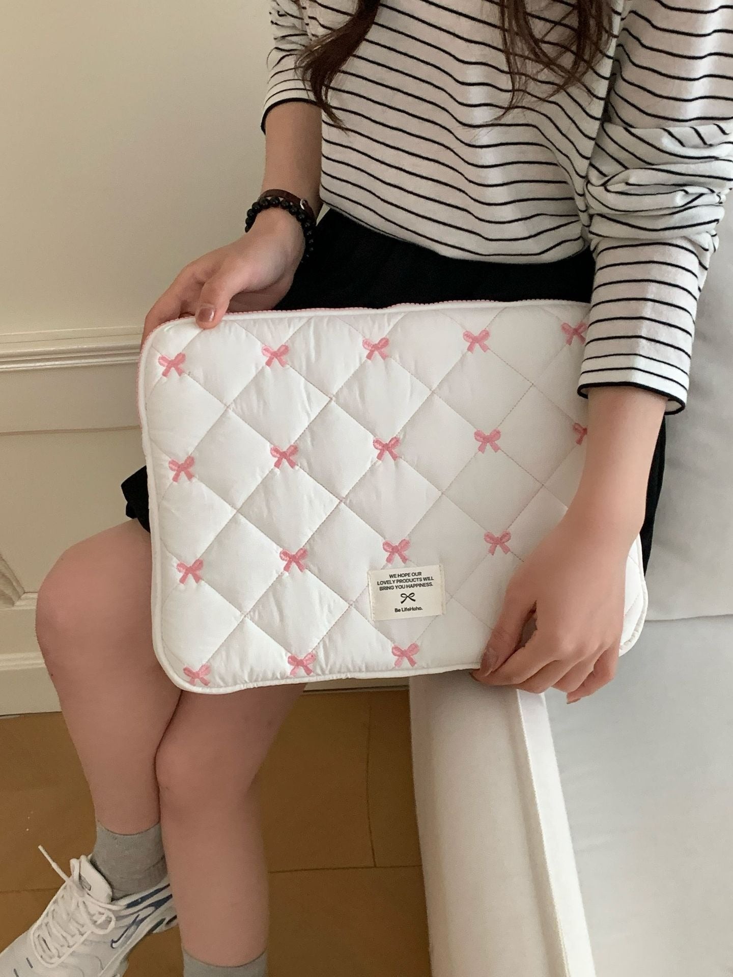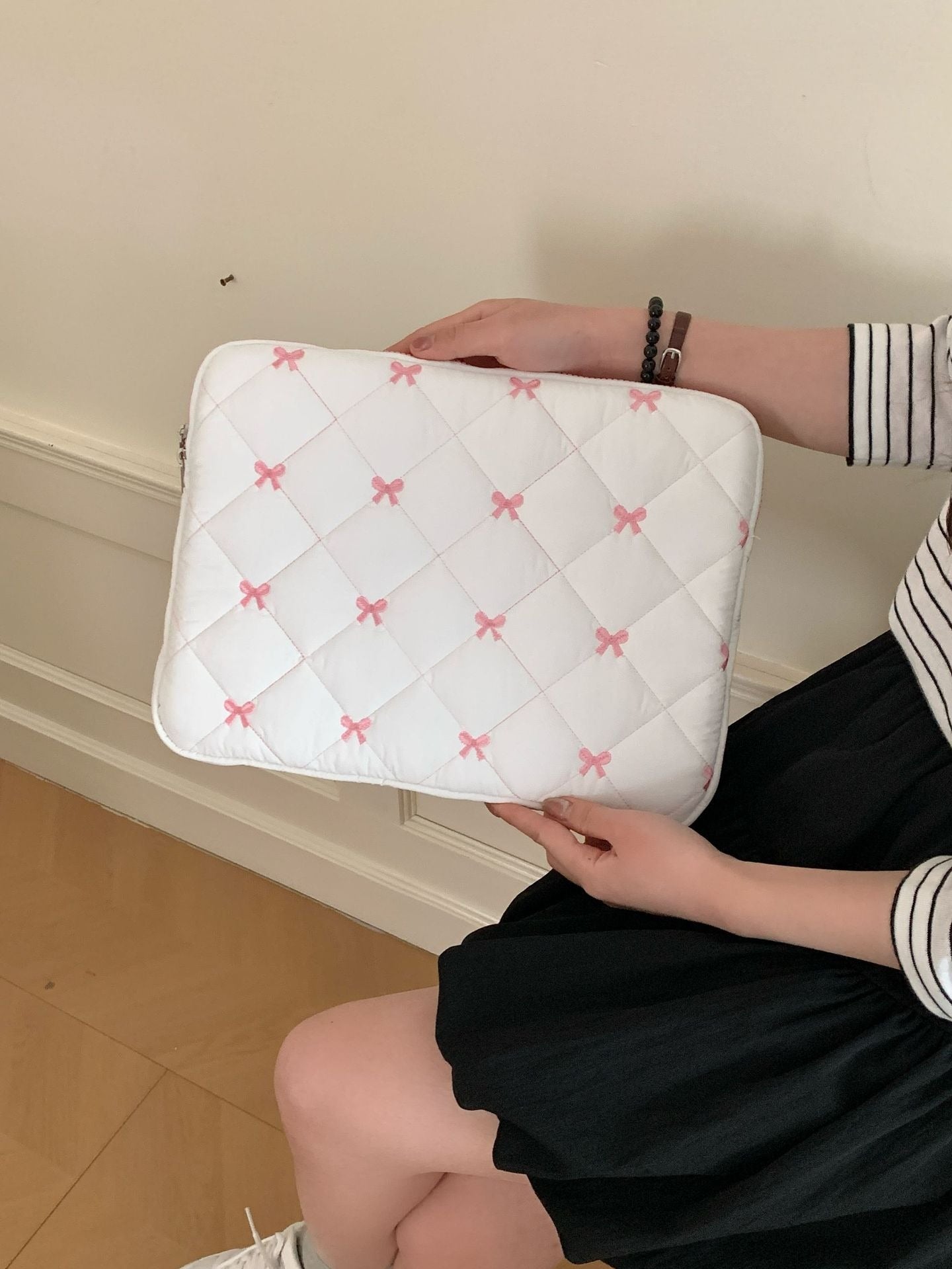 - Сумка отличается нежным и женственным дизайном, который сразу привлекает внимание. Элегантный белый цвет украшен изысканным стёганым узором с маленькими розовыми бантиками, придающими изделию особую утончённость и шарм. Такой дизайн идеально подойдёт для любителей аккуратного и стильного образа.