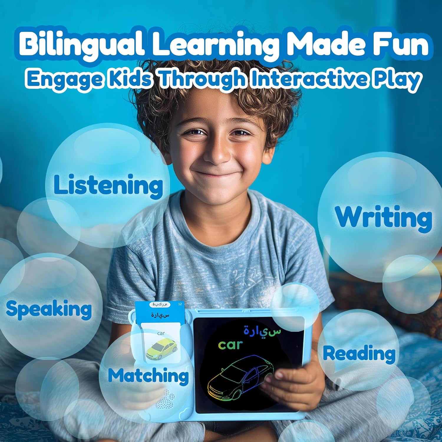 - Образовательная игра 2 в 1: карточки и планшет для письма: Устройство сочетает в себе говорящие обучающие карточки и LCD-планшет для письма размером 8 дюймов, предлагая инновационный инструмент для обучения и творчества. Решение 2 в 1 экономит место и деньги, а также развивает навыки письма и двуязычное обучение детей от 3 до 12 лет.